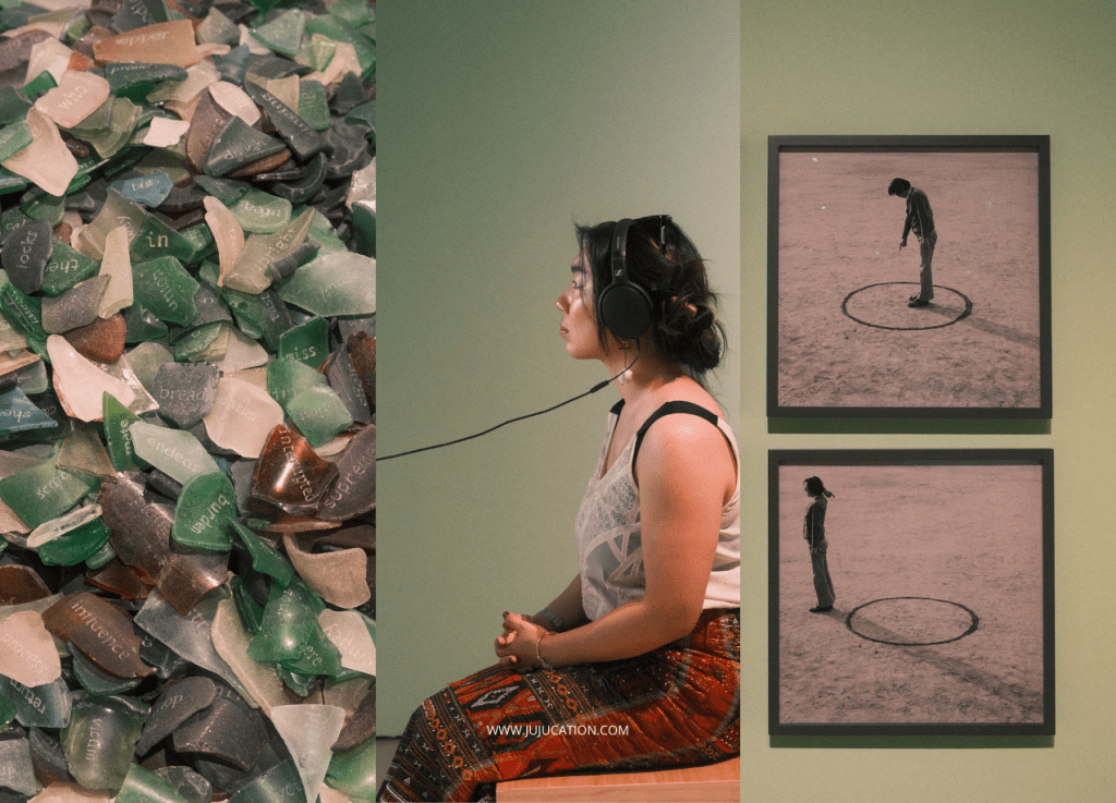 Simryn Gill collected seawashed glass from Malaysian and Singaporean beaches and engraved words onto each fragment. You can’t tell what these objects used to be, bottles? windows? something else entirely? and their histories are unknowable. But Gill has given them new language, invited you to bring your own meanings, turned erosion into a kind of poetry. The work is called Washed Up, which is funny in a dark way, because these fragments are anything but finished. They’re still talking.